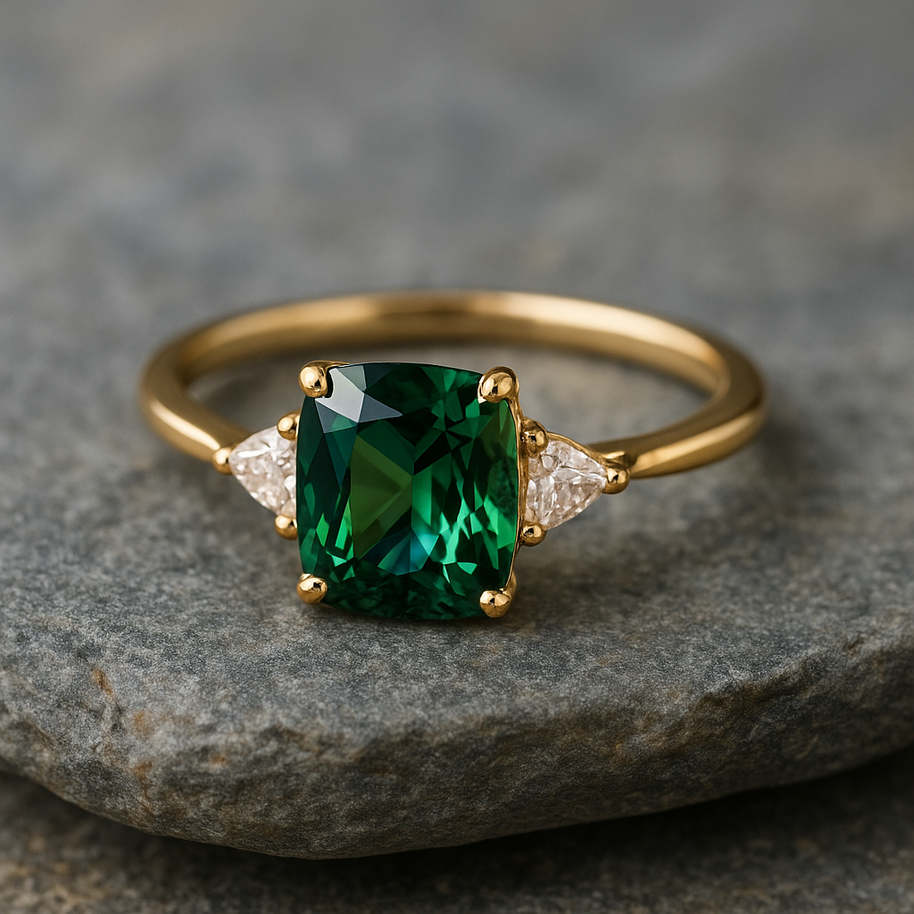 Auffällige grüne Edelsteine: Die grünen Steine verleihen diesem Ring eine frische, elegante Note, die ihn aus der Masse traditioneller Stile hervorstechen lässt.